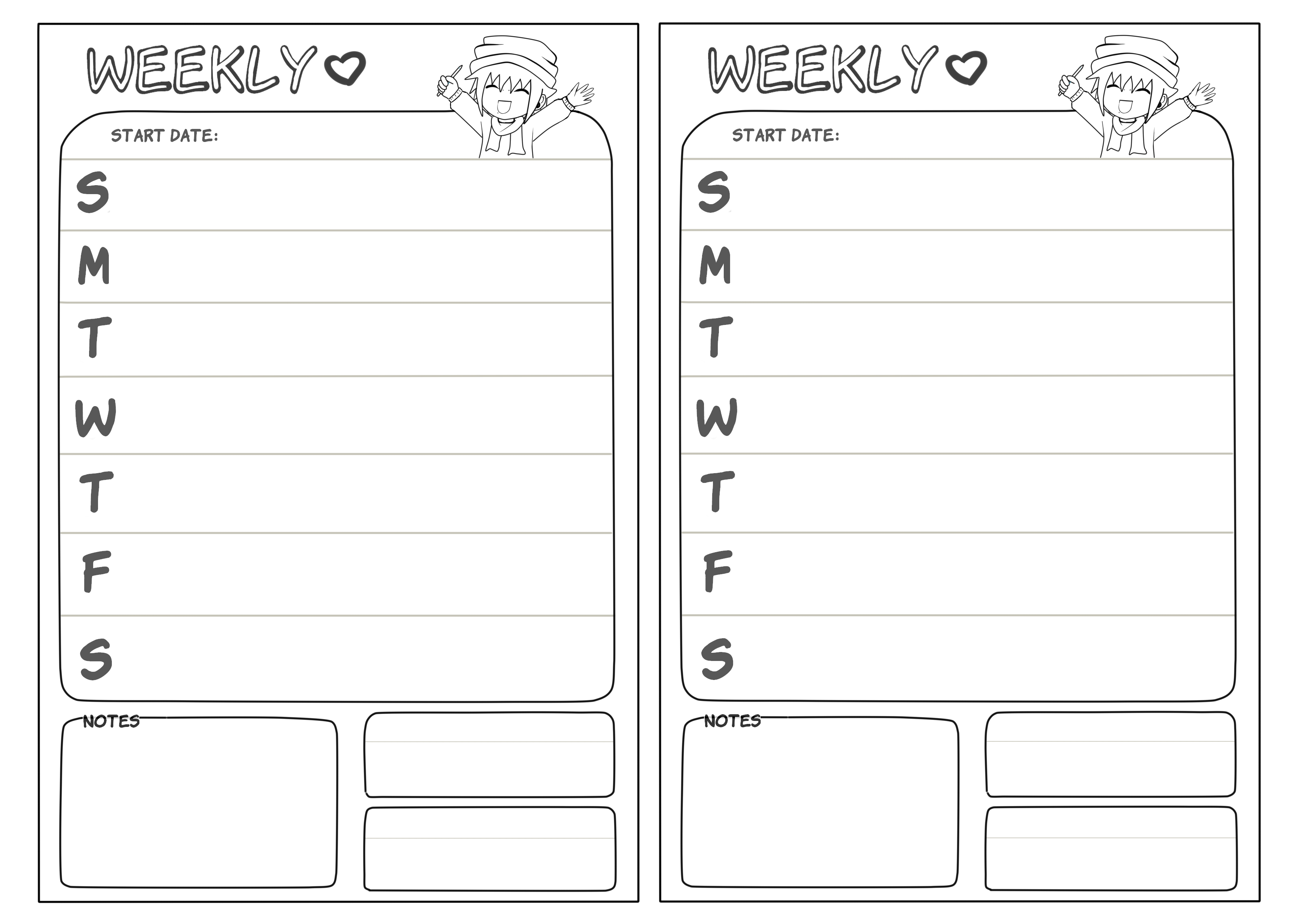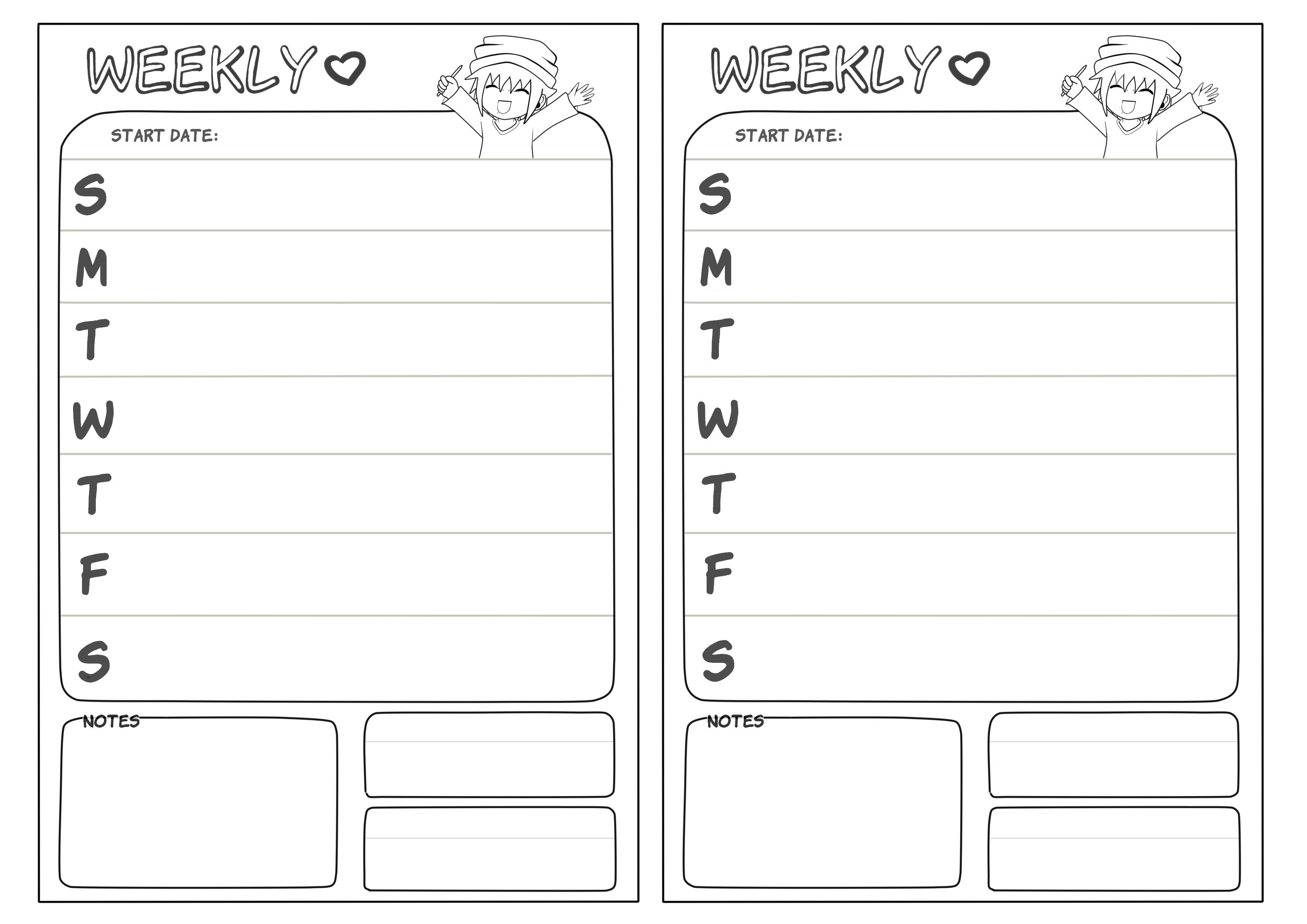 Planner design is new territory for me, but as I get braver, I’ll start start to tweak these even more, maybe add faded illustrations in the boxes or something ^^